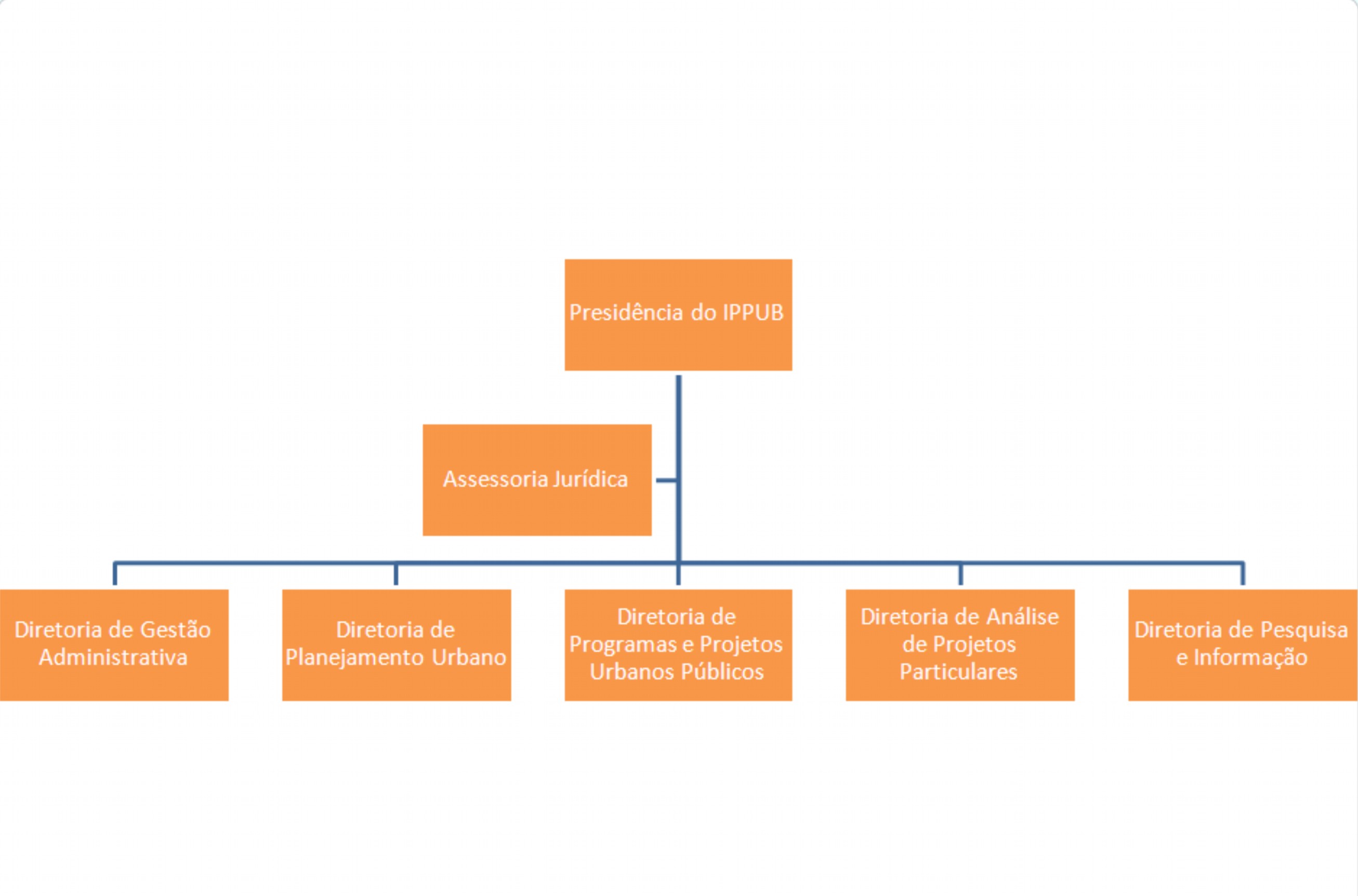 Presidência - Responsável por administrar as atividades do IPPUB, ao qual estão ligadas uma equipe de assessoria técnica e jurídica, o Conselho da Cidade e cinco diretorias: